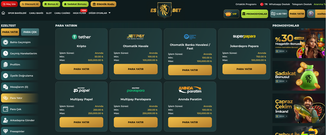 - Hızlı Havale: Minimum yatırım limiti genelde 100 TL’dir. İşlem süresi ise 10 – 20 dakika arasında değişir.